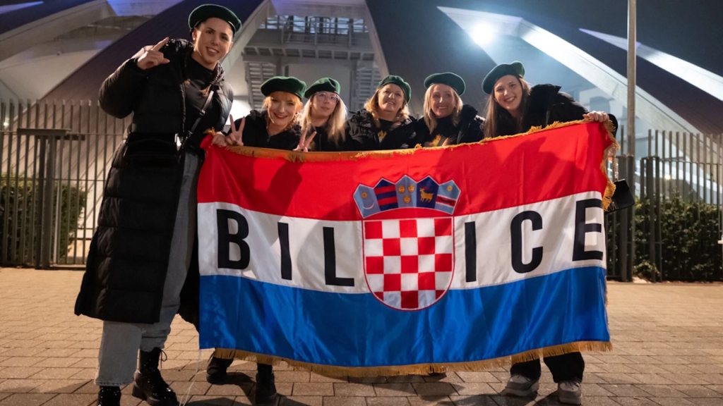 I ovoga puta ljudi su unosili zastave u dvoranu, a glavni motiv bile su zelene beretke, koje su se prodavale na jednom štandu ispred ulaza. Unatoč hladnoći, atmosfera je bila dobro zagrijana.