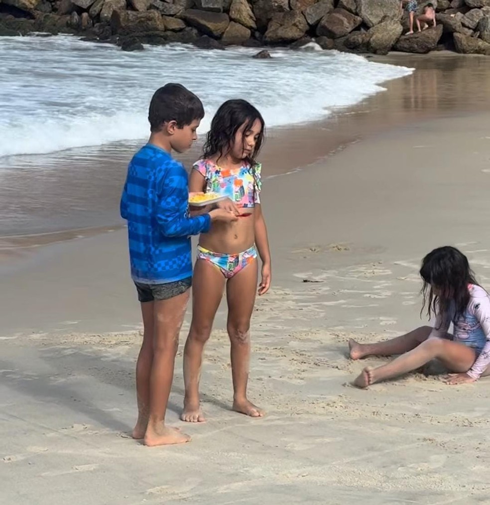 Ticiane Pinheiro e Cesar Tralli curtem dia de praia em família no Rio de Janeiro após emoção no JN